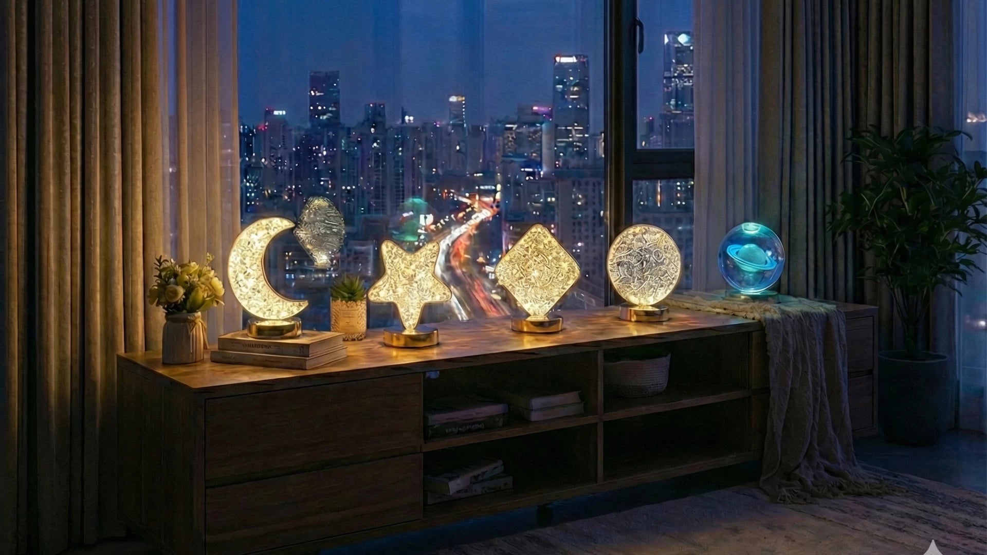 La colección Mova-Lumen transforma tus espacios con una iluminación suave y envolvente. Lámparas decorativas en forma de Luna, Estrella, Rombo y Círculo, diseñadas para crear ambientes acogedores, equilibrados y llenos de personalidad, además de nuestros otros modelos como la Lámpara LED AquaCube.